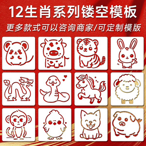 十二生肖可爱卡通绘画模板小动物喷涂绘画镂空模板手账辅助模板