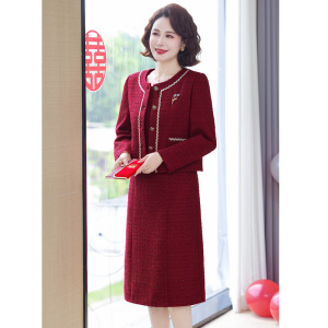 时尚女装宽松旗袍妈妈装喜庆婚宴连衣裙气质休闲喜婆婆妈妈装套裙