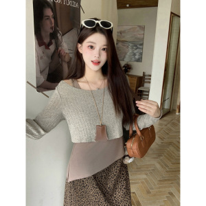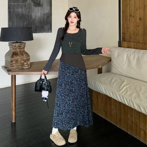 2025秋装新款胖mm大码女吊带背心坑条上衣半身裙气质宽松三件套