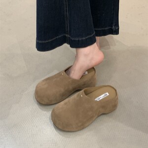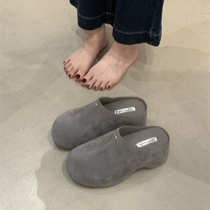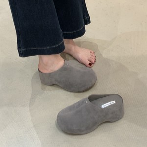 2025法式晚风松糕厚底半拖勃肯鞋跟复古秋冬外穿深口鞋一脚蹬