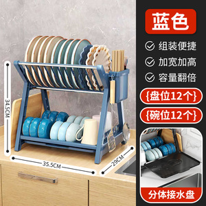 外贸厨房碗碟架沥水架收纳架台面碗盘碗筷置物架带杯架跨境碗碟架