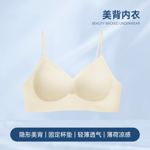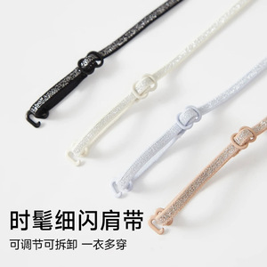 亮闪细肩带大露背内衣女粉底液隐形无痕薄款透气固定杯美背文胸罩