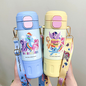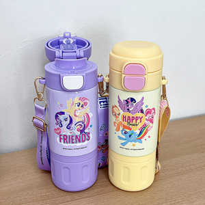 可爱小马宝莉一杯双饮保温杯可调节杯绳携带方便防滑杯垫丝印设计