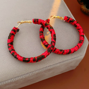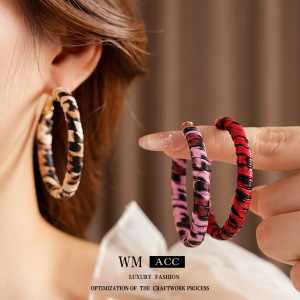 银针欧美皮革豹纹圆形耳圈复古美拉德耳环小众高级感夸张耳饰批发