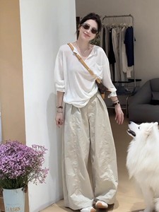 韩系灰色v领正肩长袖防晒罩衫t恤女早秋吊带外搭薄纱针织衫上衣