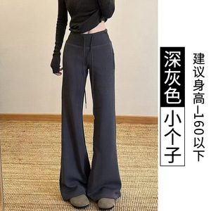 灰色运动微喇裤女春秋季2025新款小个子高腰垂感显瘦休闲喇叭裤子