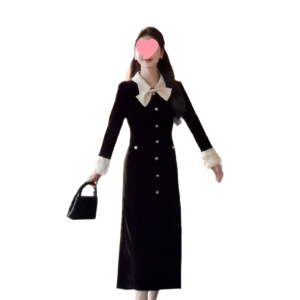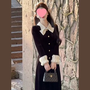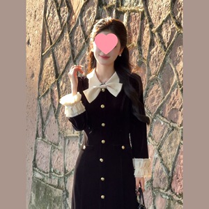 法式赫本风气质千金感丝绒连衣裙女装秋冬新款时尚高级钉珠长裙子