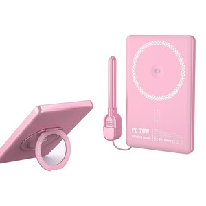 跨境磁吸无线充电宝5000毫安大容量360°支架挂绳PD20W快充充电宝