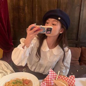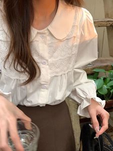 法式减龄娃娃领衬衫女韩版甜美气质长袖衬衣设计感别致打底上衣秋