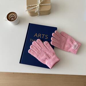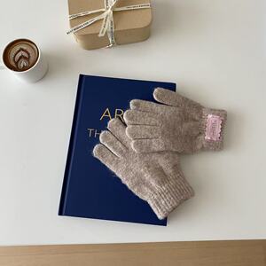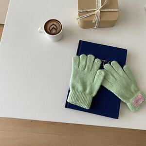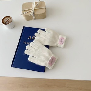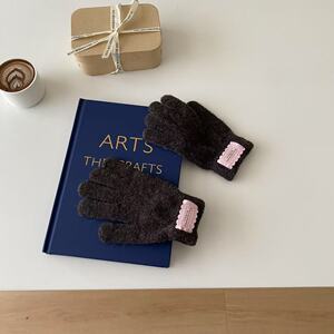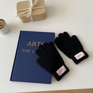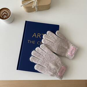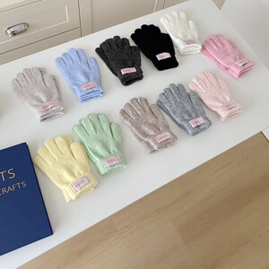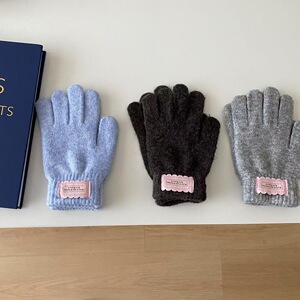 韩单款~ins羊毛混纺针织手套女冬季2025新款贴布保暖骑行防寒手套