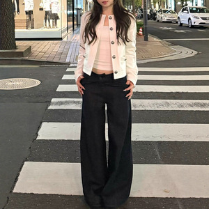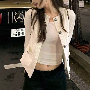 zzpalete 中古香香 白色明线撞色小香牛仔短外套女秋夹克