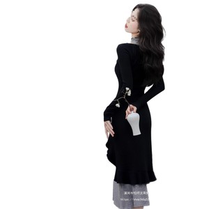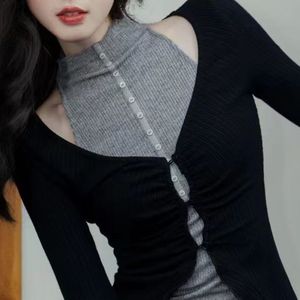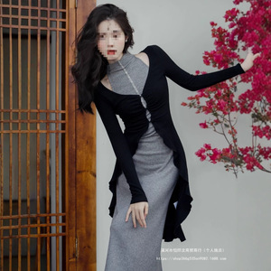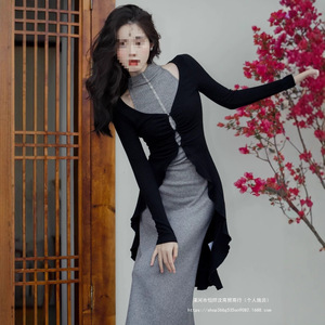 冷淡风御姐范穿搭套装初秋高级感两件套灰色针织裙黑色针织开衫女