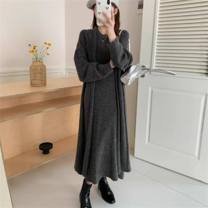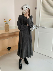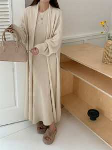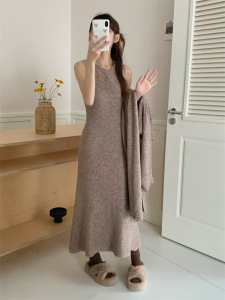 慵懒风针织套装女秋冬新款孕妇装长款毛衣外套+背心连衣裙两件套