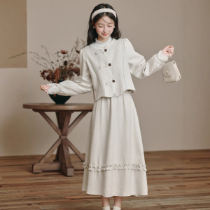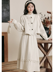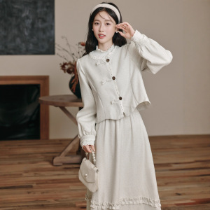 女装2025秋冬季十三行新中式复古盘扣学院风长袖上衣半身裙两件套