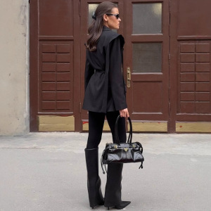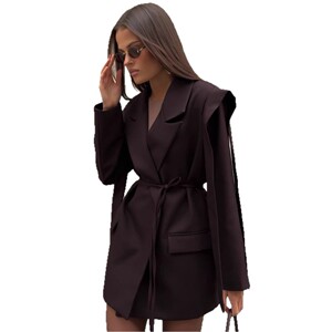 跨境欧美气质优雅西装领绑带修身风衣外套女外贸新款宽肩女装外搭
