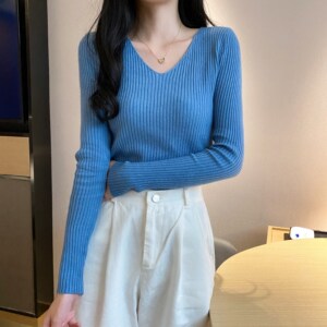 毛衣女2025秋冬新款百搭修身v领打底针织衫洋气内搭长袖紧身上衣