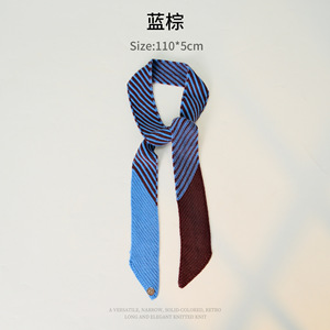 小众设计感针织领带巾女秋冬新款拼色条纹细窄长条小围巾时尚外搭