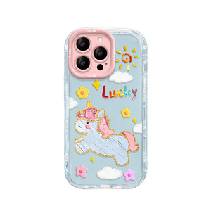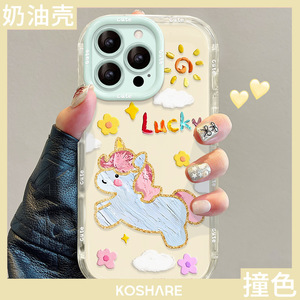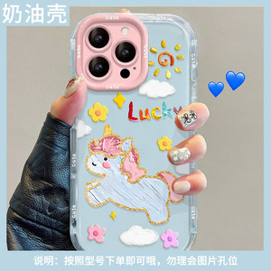 油画独角兽适用苹果16promax手机壳iphone14可爱女生15全包13防摔