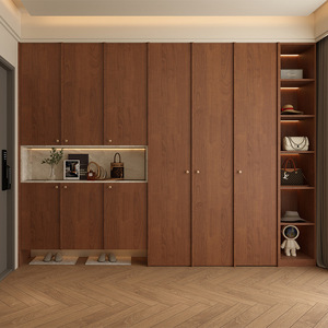 新中式胡桃木玄关柜入户门鞋柜骨骼线储物柜收纳柜家用客厅家具