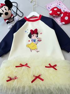 2025秋款女童白雪公主连衣裙宝宝爱莎可愛公主裙女童卫衣连衣裙
