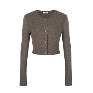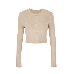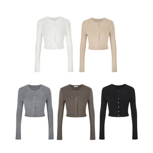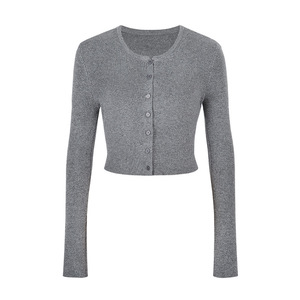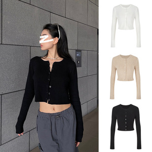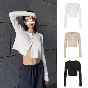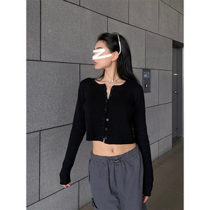 辣妹bm风圆领单排扣针织长袖开衫女秋季冬美式露脐短款打底衫上衣
