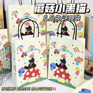 新款蘑菇小黑猫礼品袋ins风高颜值皮质手提袋包装适合生日教师节