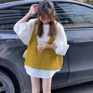 韩系减龄针织马甲衬衫两件套女2025秋新款宽松叠穿早秋松弛感穿搭
