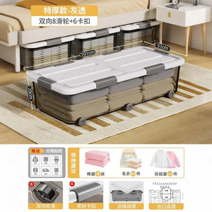 【长62*宽40.5高18】灰透·防潮防尘双向4滑轮v