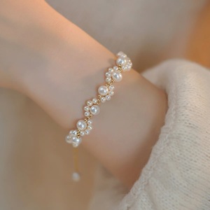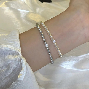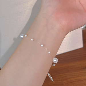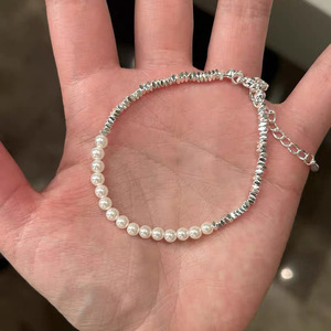 S925纯银不规则海蓝宝淡水珍珠手链爆款小众ins简约百搭个性手串