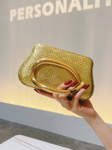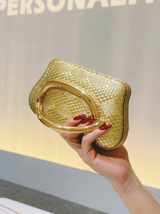 金色闪耀晚宴包优雅圆环手拿包精致礼服派对包时尚气质斜挎链条包