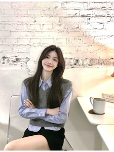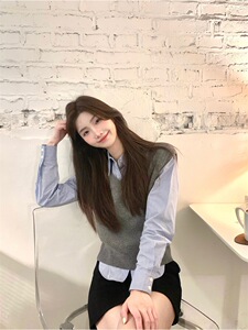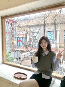 2025秋季新款韩系设计感高级百搭条纹POLO领衬衫马甲时尚套装女潮
