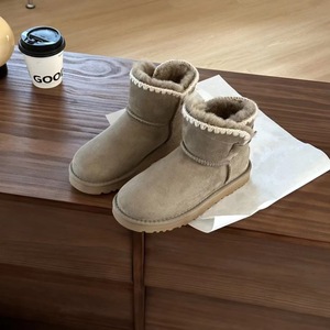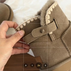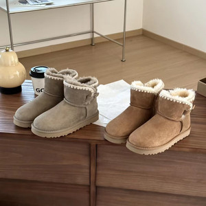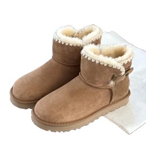 桑坡村女皮毛一体手工编织毛线铜扣皮带按扣短筒加绒加厚棉雪地靴