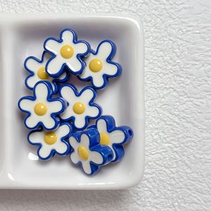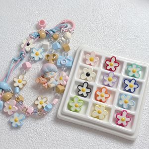 多巴胺烤漆滴油花朵直孔亚克力串珠diy手机链钥匙扣材料饰品配件
