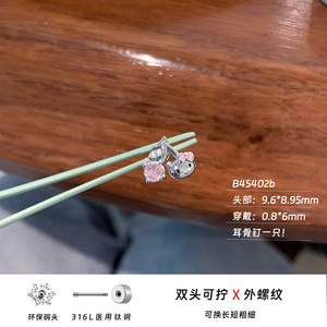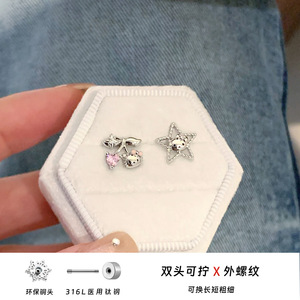 锆石耳钉316L医用钛钢耳饰可爱樱桃KT猫耳骨钉养耳洞五角星耳环