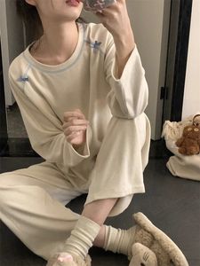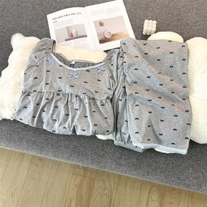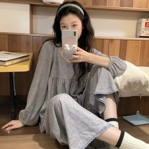 睡衣女春秋季韩系可爱格子花边长袖长裤简约风套装夏天新款家居服