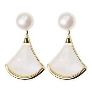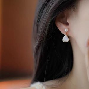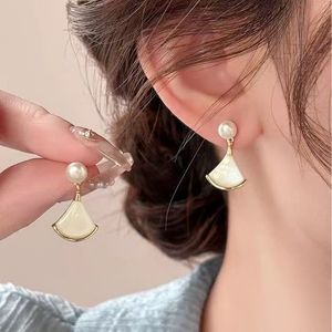 扇子耳钉简约时尚珍珠轻奢小众高级感百搭流行耳饰夏季新款