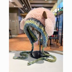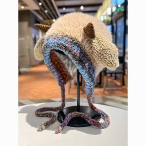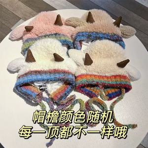 韩版可爱小羊毛绒帽子女秋冬季保暖绑带针织护耳帽百搭套头雷锋帽