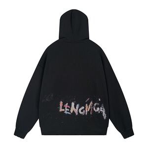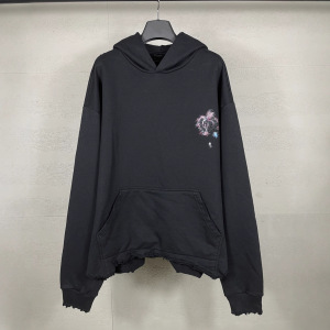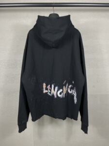 正确版本B家SS25新款巴黎麦穗涂鸦彩色字母做旧下摆磨烂连帽卫衣
