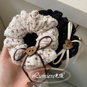 ins风复古文艺木纹爱心纽扣飘带碎花大肠发圈温柔少女针织发绳女