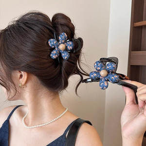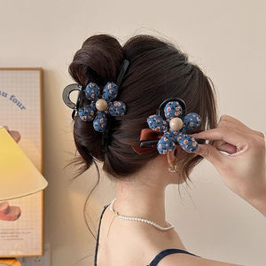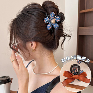 韩国东大门AB版碎花蝴蝶结抓夹女大号后脑勺盘发鲨鱼夹高级感头饰