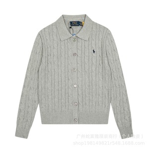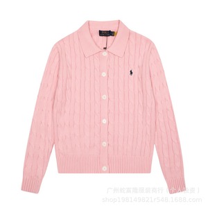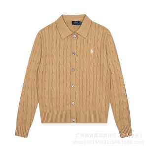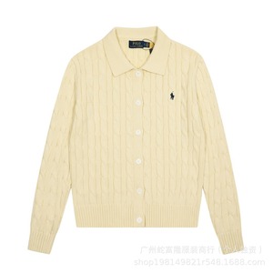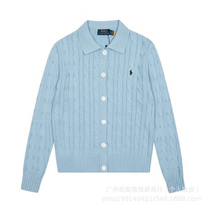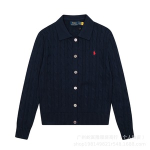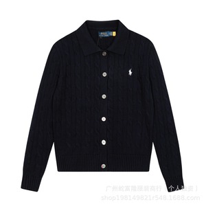 现货2025秋冬新款拉夫RL纯色小马刺绣logo翻领麻花针织开衫