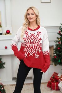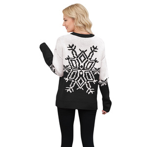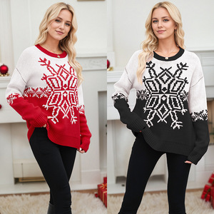 2025跨境秋冬新款wish亚马逊欧美圣诞款雪花长袖打底针织毛衣女
