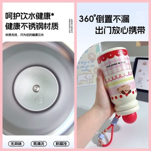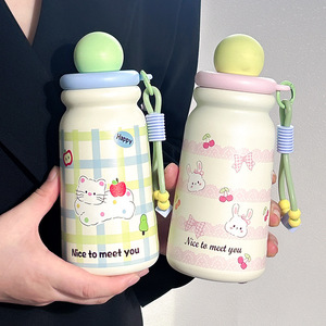 学生大容量高颜值格子狗狗保温杯ins风女生316不锈钢可爱儿童水杯
