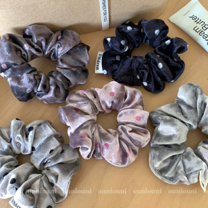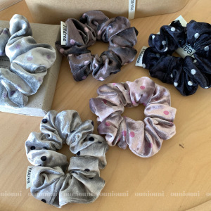质感光泽丝绒波点发圈百搭法式少女大肠圈褶皱布艺发绳手作发饰品