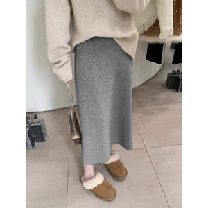 软糯羊毛针织半身裙女秋冬季中长款直筒包臀裙高腰a字裙子通勤风