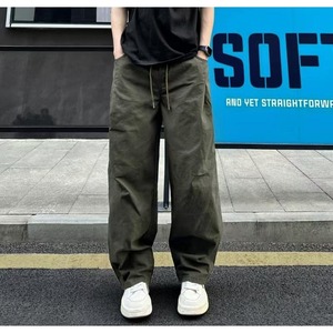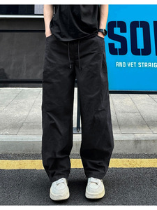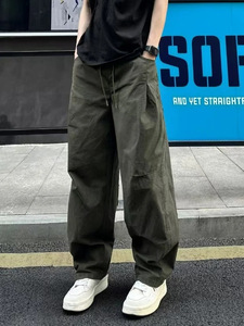 美式复古伞兵工装裤男士春秋季宽松廓形阔腿裤压褶休闲机能长裤潮