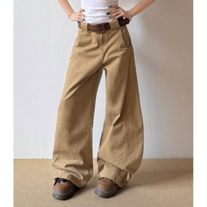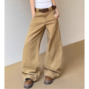 美式复古弯刀裤男女新款设计感宽松水洗拼接裁剪休闲长裤
