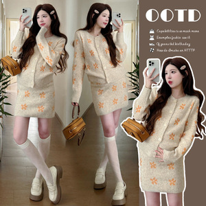 孕妇毛衣套装2025秋气质孕期穿减龄时尚慵懒绣花上衣半身裙两件套