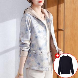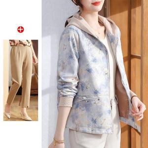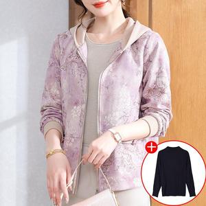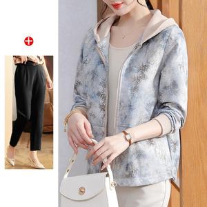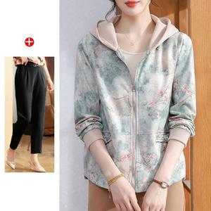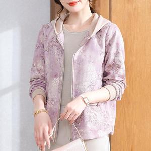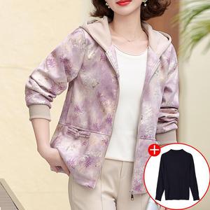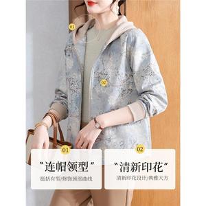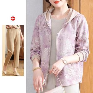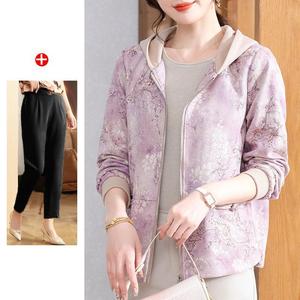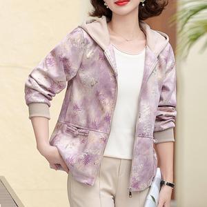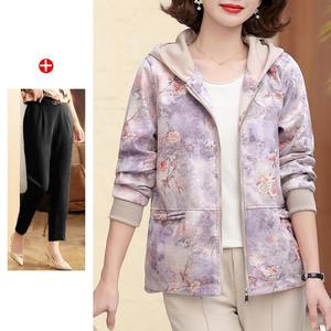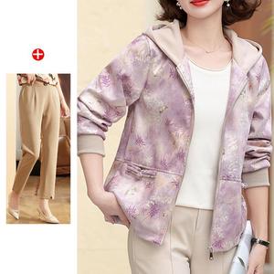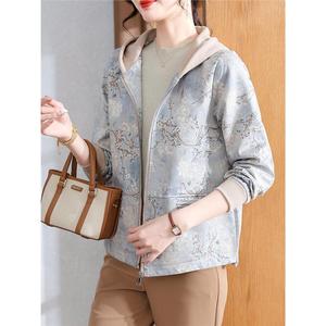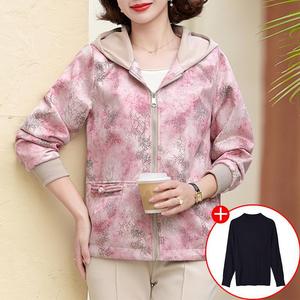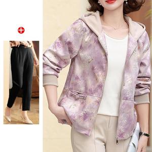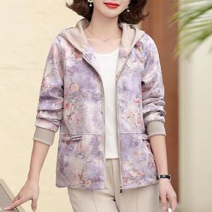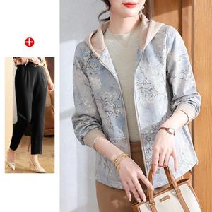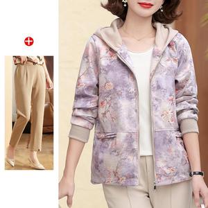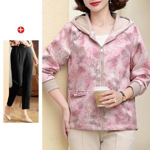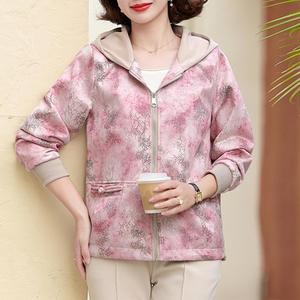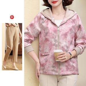 妈妈秋装2025新款连帽外套中老年女装休闲上衣春秋拉链风衣夹克衫