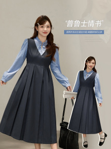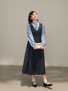 秋季新款压褶显瘦假两件连衣裙胖mm大码女装学院风连衣裙子66056